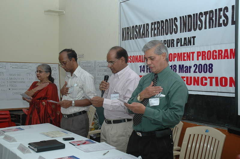 • "ATTITUDE & MINDSET CHANGE FOR NATIONAL DEVELOPMENT" in which Mr Ramachandra Gowda, Hon Minister, Government of Karnataka, Mr Mahima Patel, MLA, Karnataka, Leading IAS and IPS officers, heads of IT companies, Engineering industries, Educational Institutions, Public and Private sector companies, print and electronic media personnel, musicians took part. The papers and discussions highlighted the role of attitude and mind set for organizational and national growth and how Indian scriptures contribute for change in mind set and attitude.
